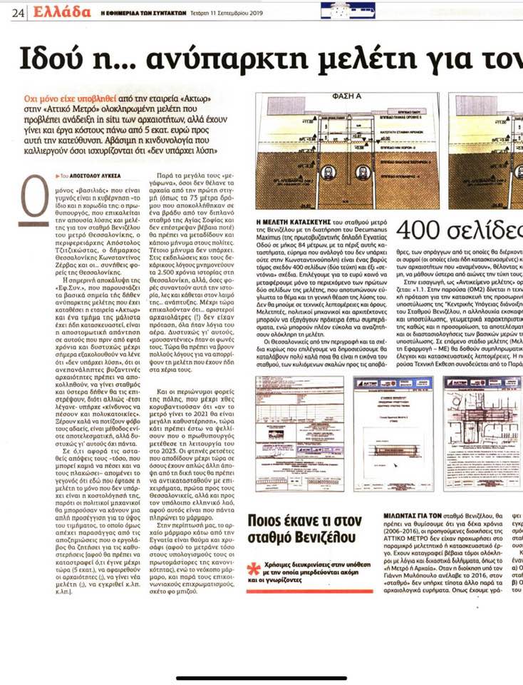 - Για τις αρχαιότητες στον σταθμό Βενιζέλου – Η απάντηση του Μ. Τιβέριου (ΑΥΓΗ, 09.03.2013)