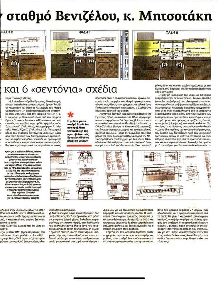 3. Για τις Οριστικές Μελέτες επιπέδου 1 (στατικές, αρχιτεκτονικές και ηλεκτρομηχανολογικές) για την διάνοιξη της σήραγγας. Στις 29/8/2019 αναρτήθηκε στη διαύγεια (ΑΔΑ: 911Φ46Ψ8Ο3-92Ι) έγκριση καταβολής πληρωμής 829.918,65€, για τις Οριστικές μελέτες επιπέδου 1 (στατικές-αρχιτεκτονικές-ηλεκτρομηχανολογικές) του επανασχεδιασμένου Σταθμού Βενιζέλου με κατά χώραν διατήρηση των αρχαιοτήτων.